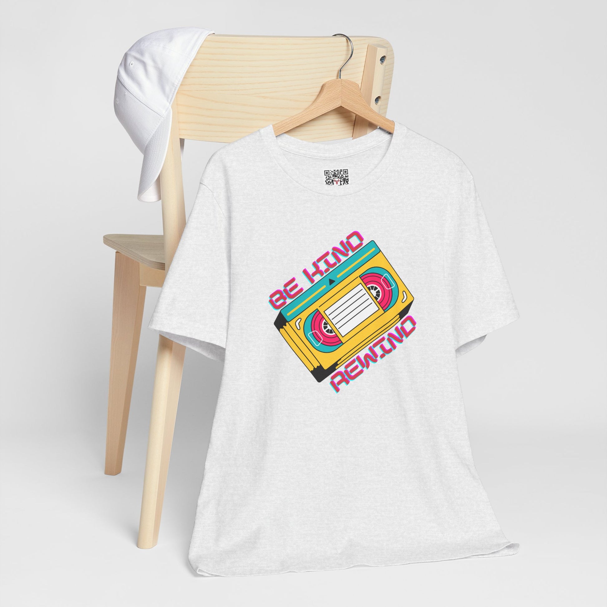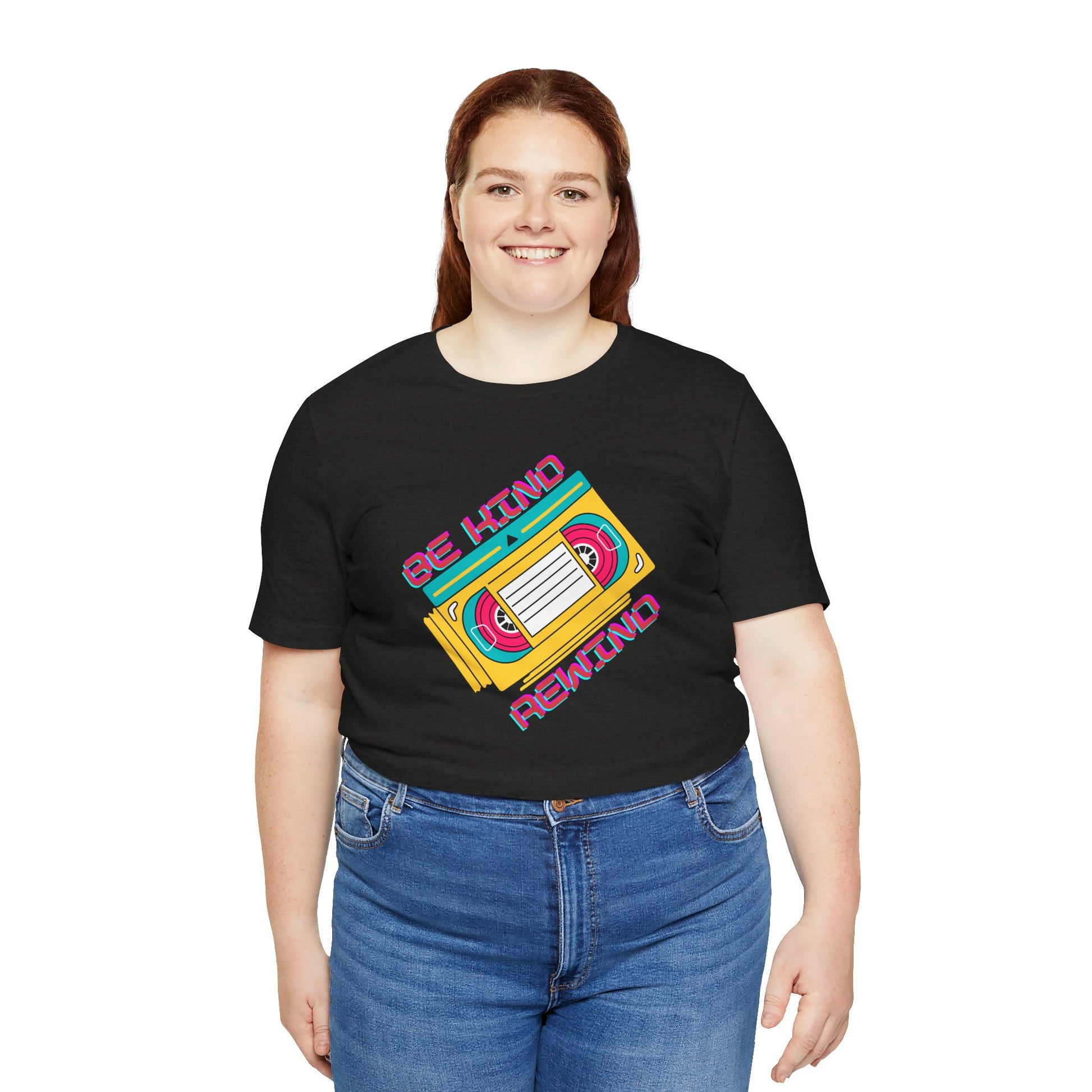 The “Be Kind, Rewind” tee is a nostalgic nod to the simpler times, when your biggest worry was forgetting to rewind the tape before returning it. Perfect for anyone who remembers the golden age of analog laziness and late fees.