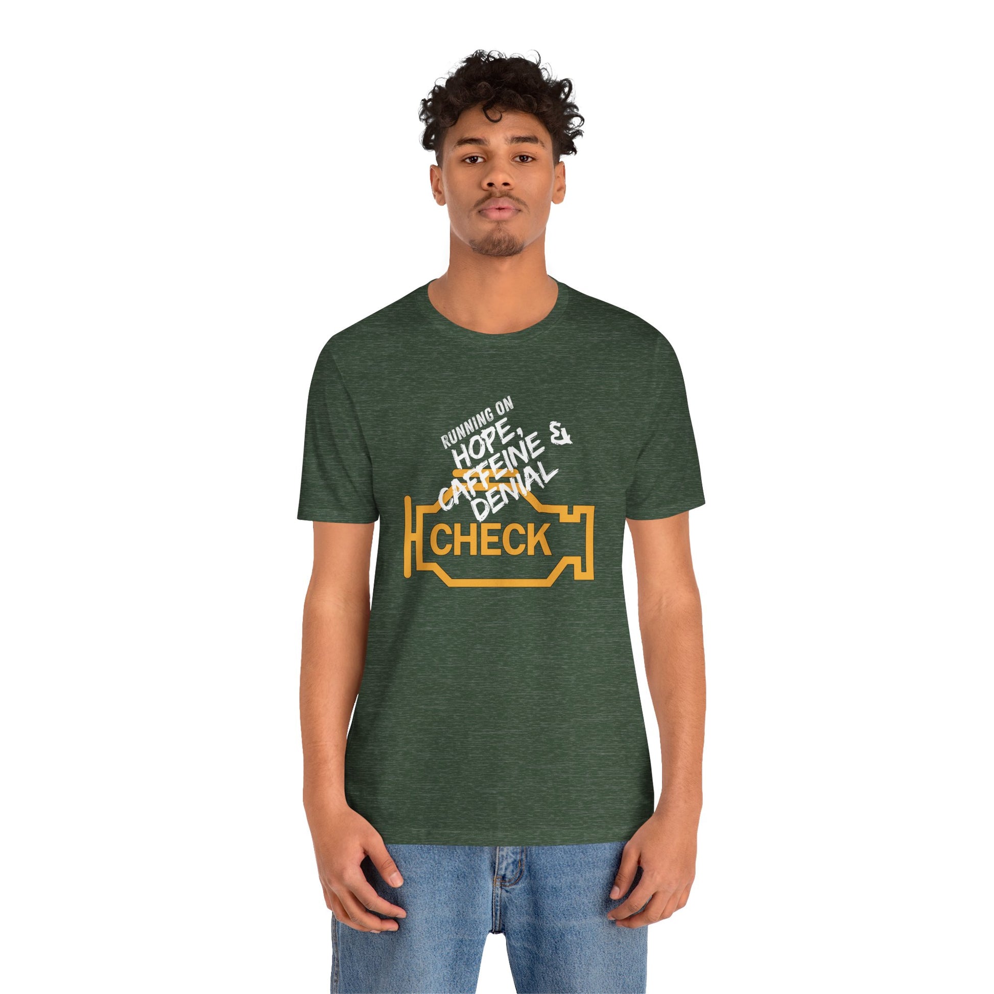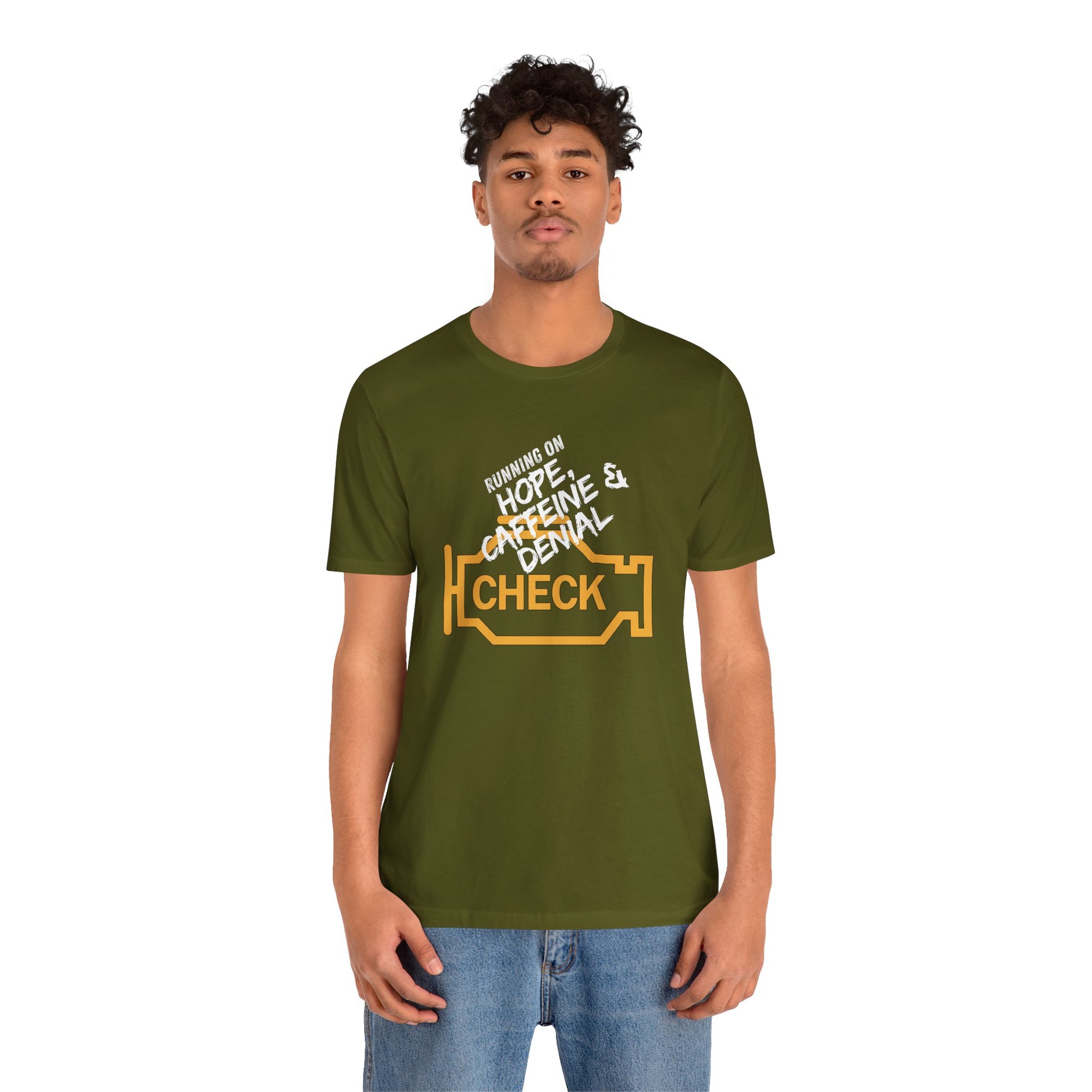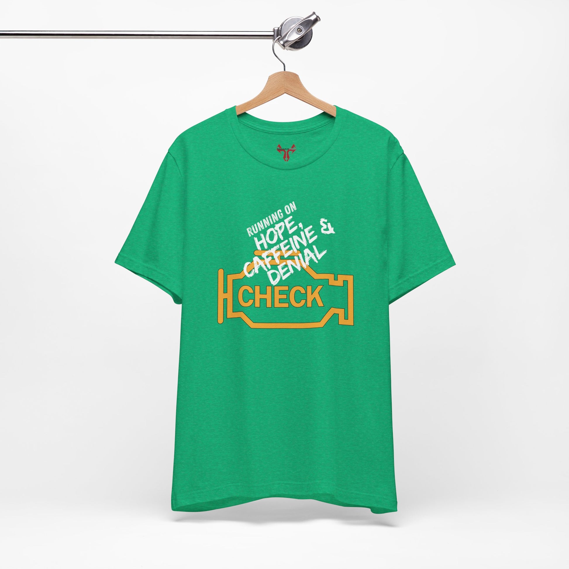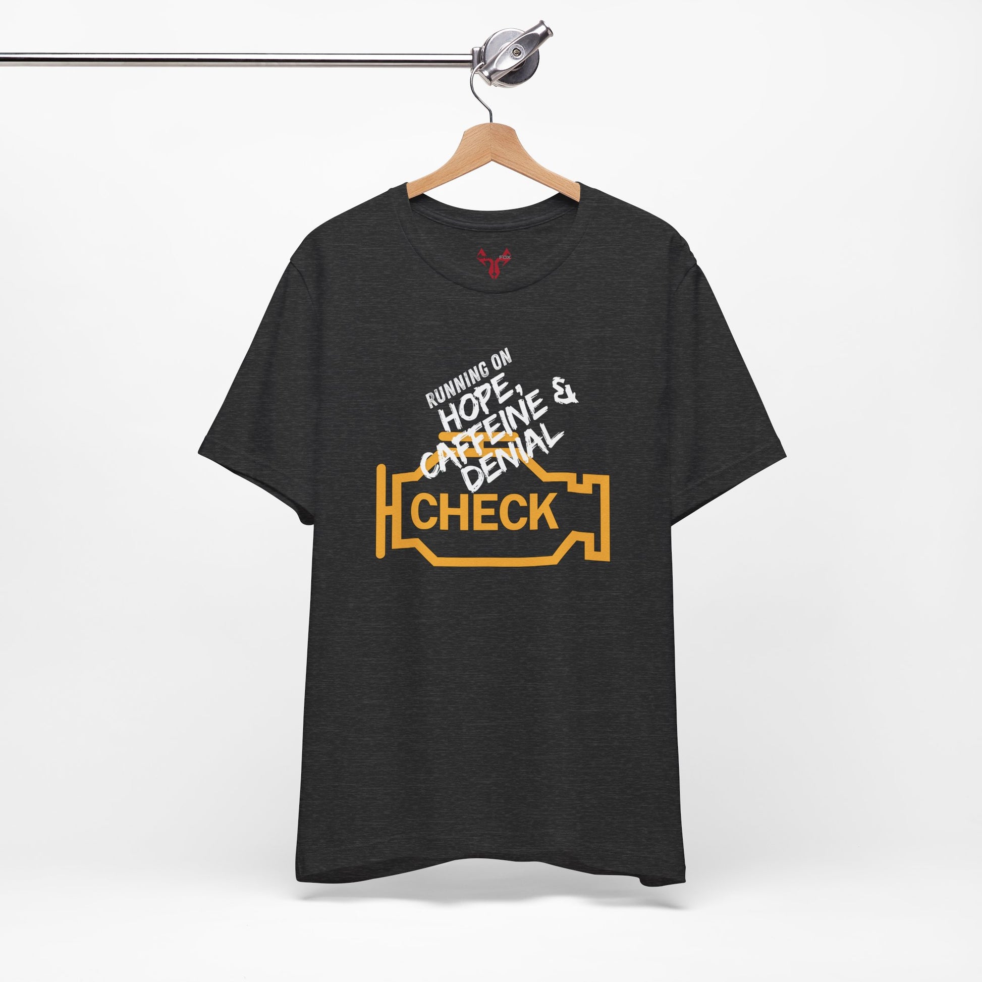 Running on hope, caffeine, and denial — the official fuel mix of getting through it. For the overworked, under-rested, and still somehow functioning. A daily reminder that burnout builds character… and probably heart palpitations.